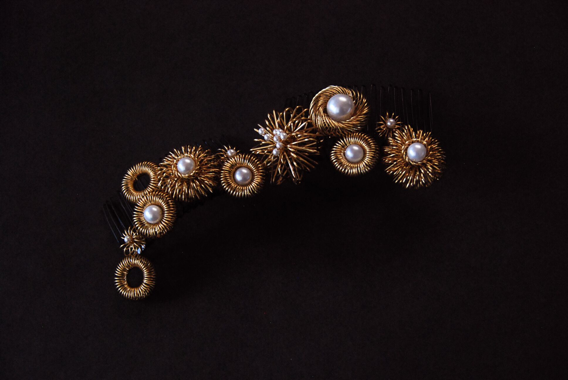 コームから立ち上がって飾りがついているので、髪に付ける際、飾りの向きを多少調節することができます。