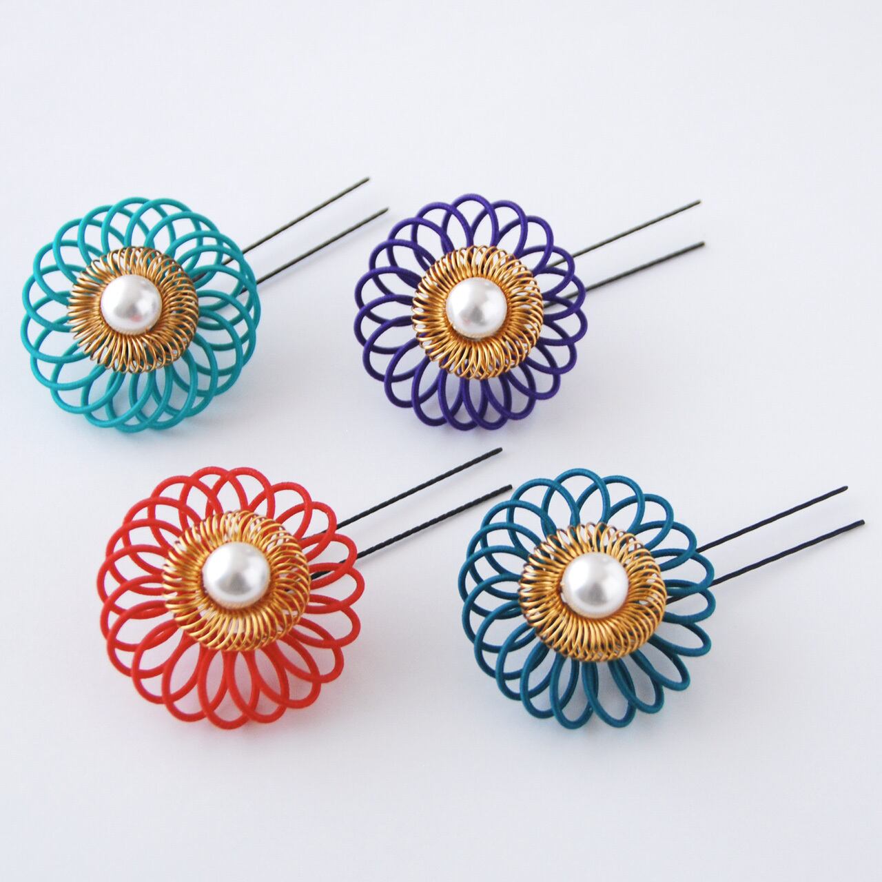 Uピンから立ち上がって飾りがついているので、髪に付ける際、飾りの向きを多少調節することができます。